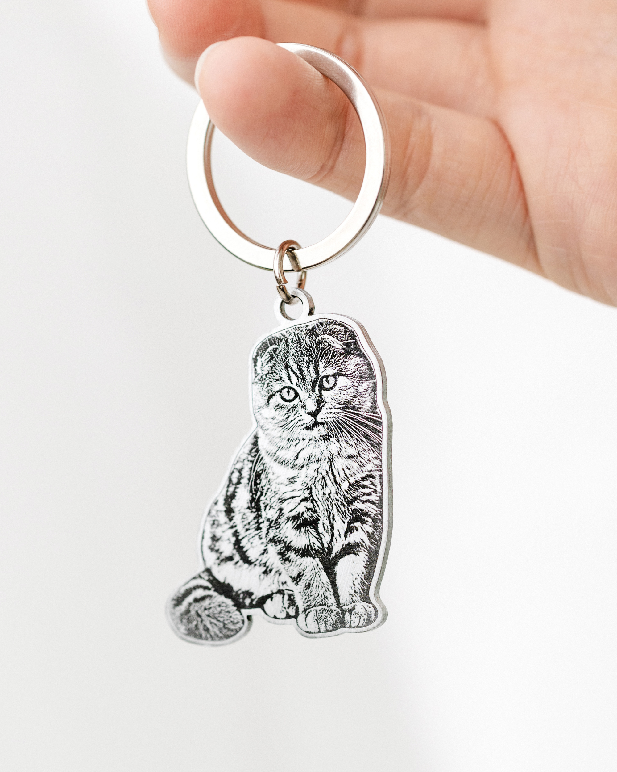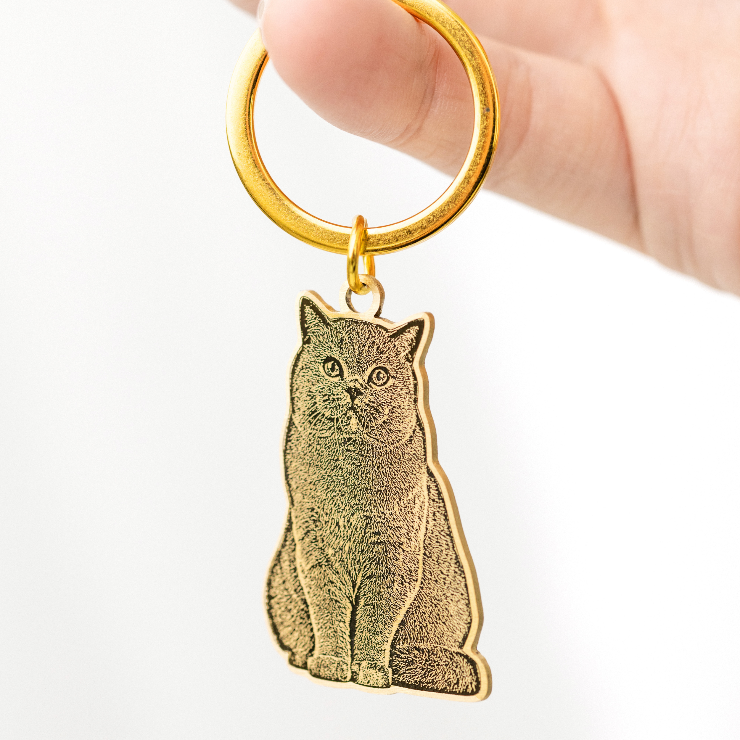 Each keychain is engraved with expert precision, capturing the finest details of your cat’s unique features, from their elegant whiskers to their adorable paws.