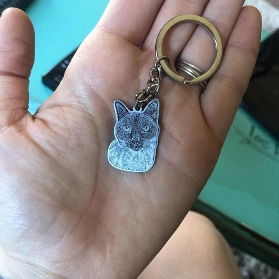 Once the mockup is ready, we move to engraving! Using top-tier equipment, we carefully etch your pet’s features—whiskers, paws, and all—onto high-quality materials. Every engraving is done with attention to detail, turning your pet’s photo into a beautiful, custom keychain that you’ll treasure!