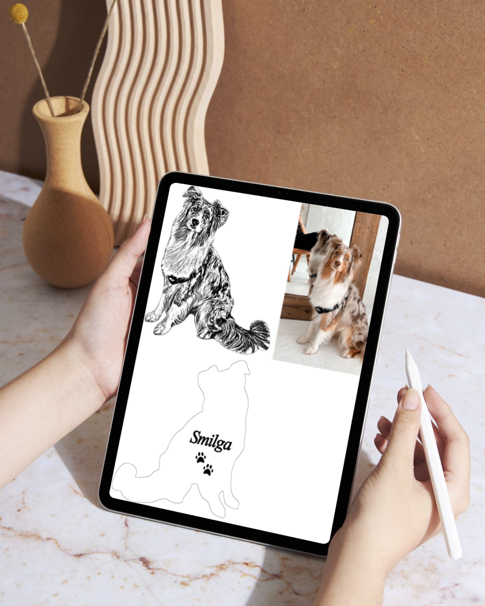 As soon as we receive your order with photo, our team begins the creative process by transferring your pet’s photo into a production mockup. This step takes about 1-2 business days and ensures that every detail of your pet’s likeness is captured perfectly for engraving.
