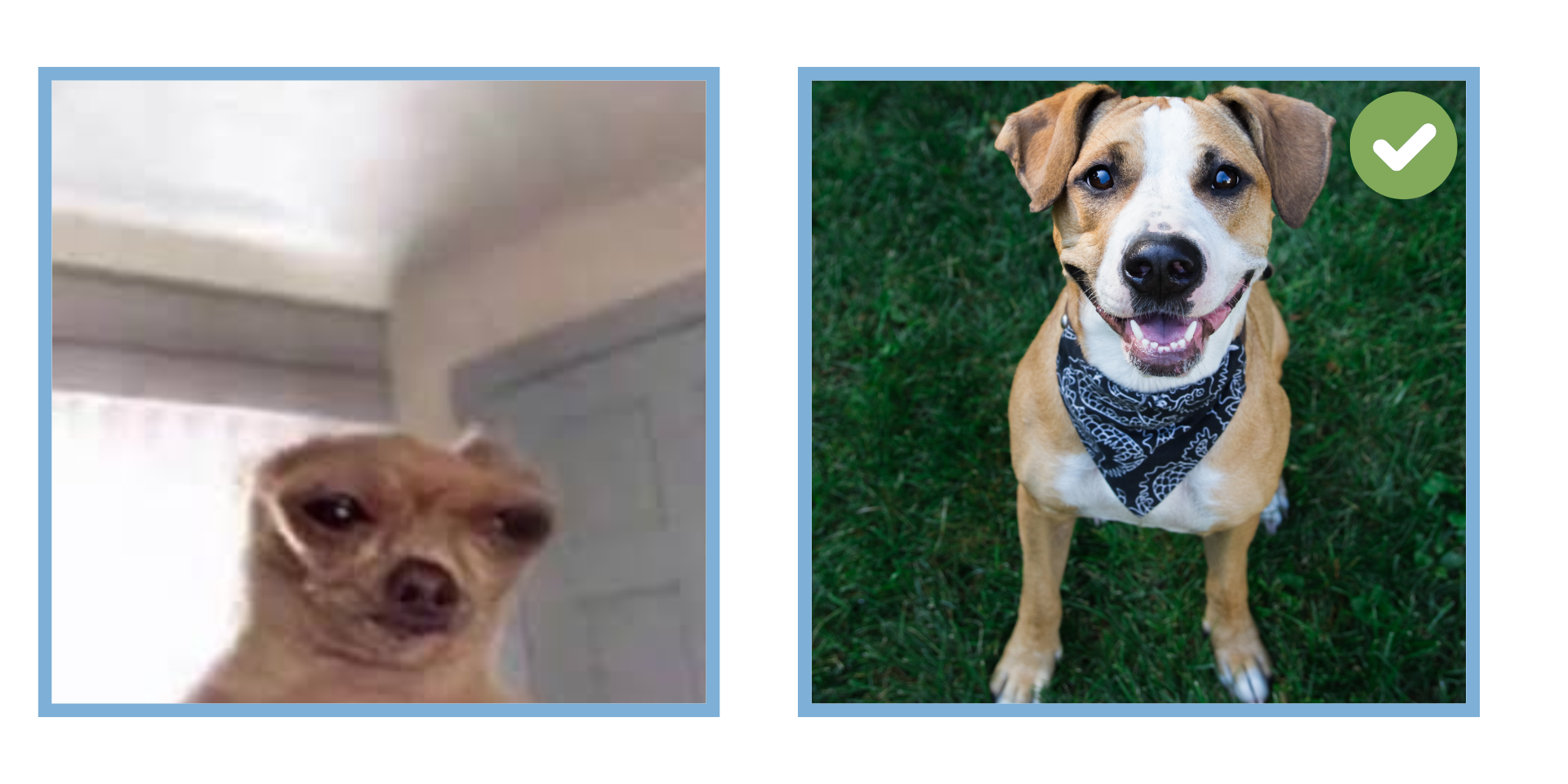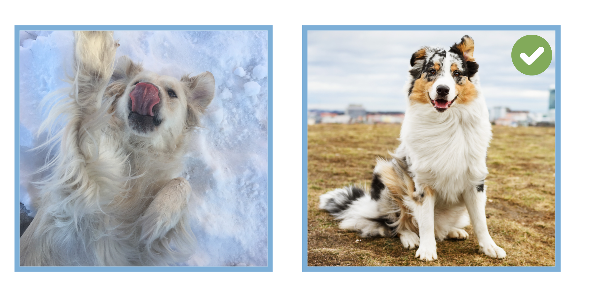 Make sure your pup’s ears, paws, and whiskers are all in the frame. If it’s missing in the photo, it won’t make it into the engraving! Whether it's a headshot or a full-body glam shot, make sure their best angles are on display.